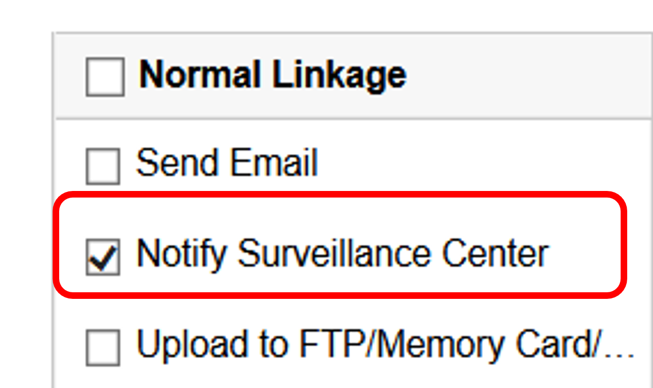 Hinweis: Bitte überprüfen Sie die Notify Surveillance Center Kontrollkästchen als Alarmweiterleitung.