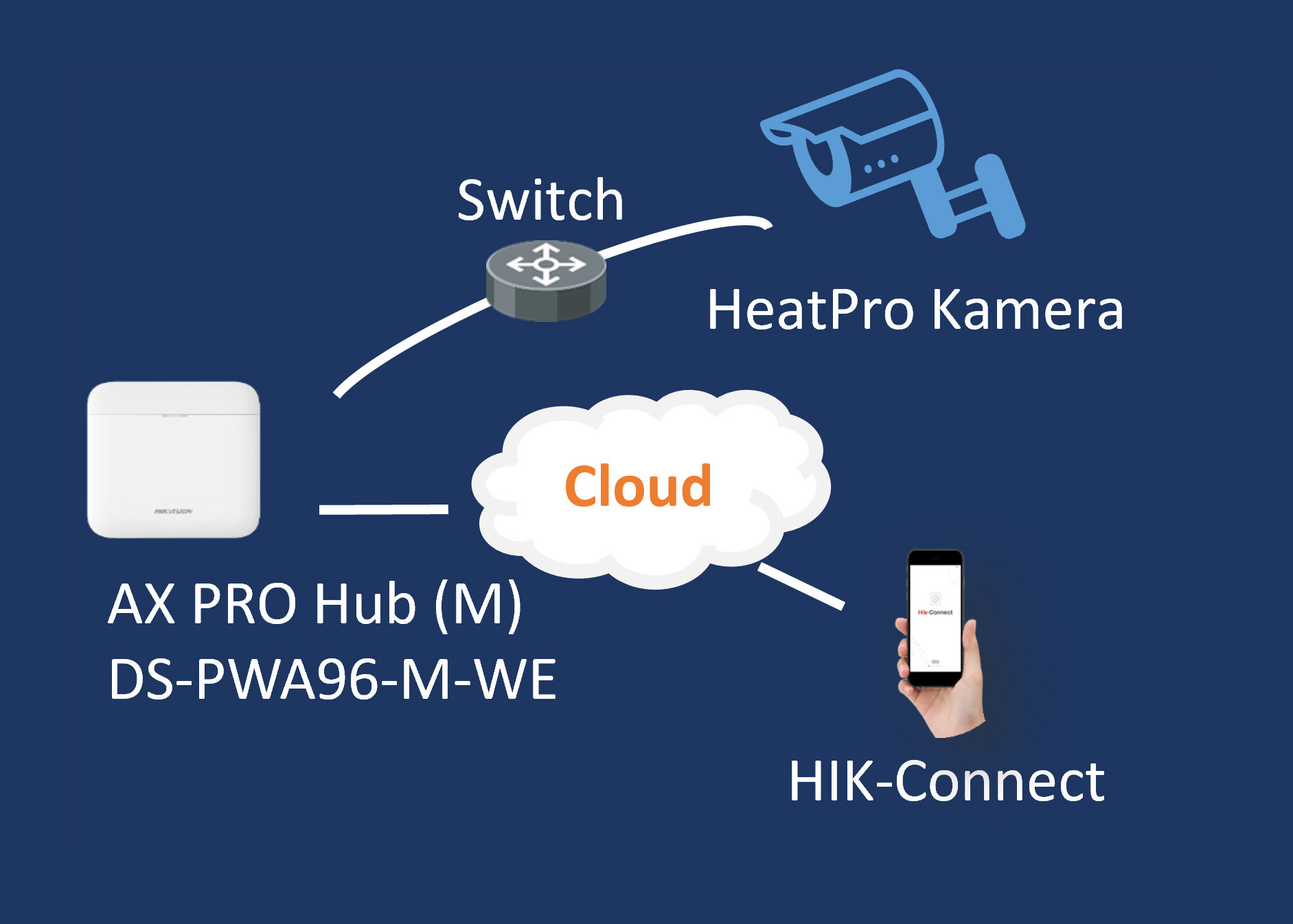 Verbinden Sie die HeatPro-Kamera mit dem Router/Switch, sodass sich die HeatPro-Kamera und der AX PRO Hub im selben Netzwerk befinden. Schalten Sie dann die Geräte ein.