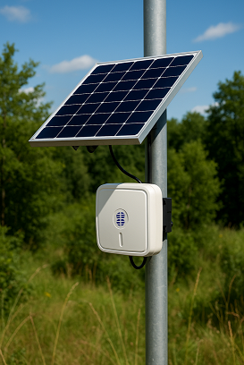 Permananter Fernzugriff im wartungsfreien Autonomiebetrieb - Hub 2 (4G) im Outdoorgehäuse zur mobilen und autarken Überwachung inklusvie 12V PSU, sowie Solar-Set 100W Panel mit 50Ah Li-Batterie und Masthalter.